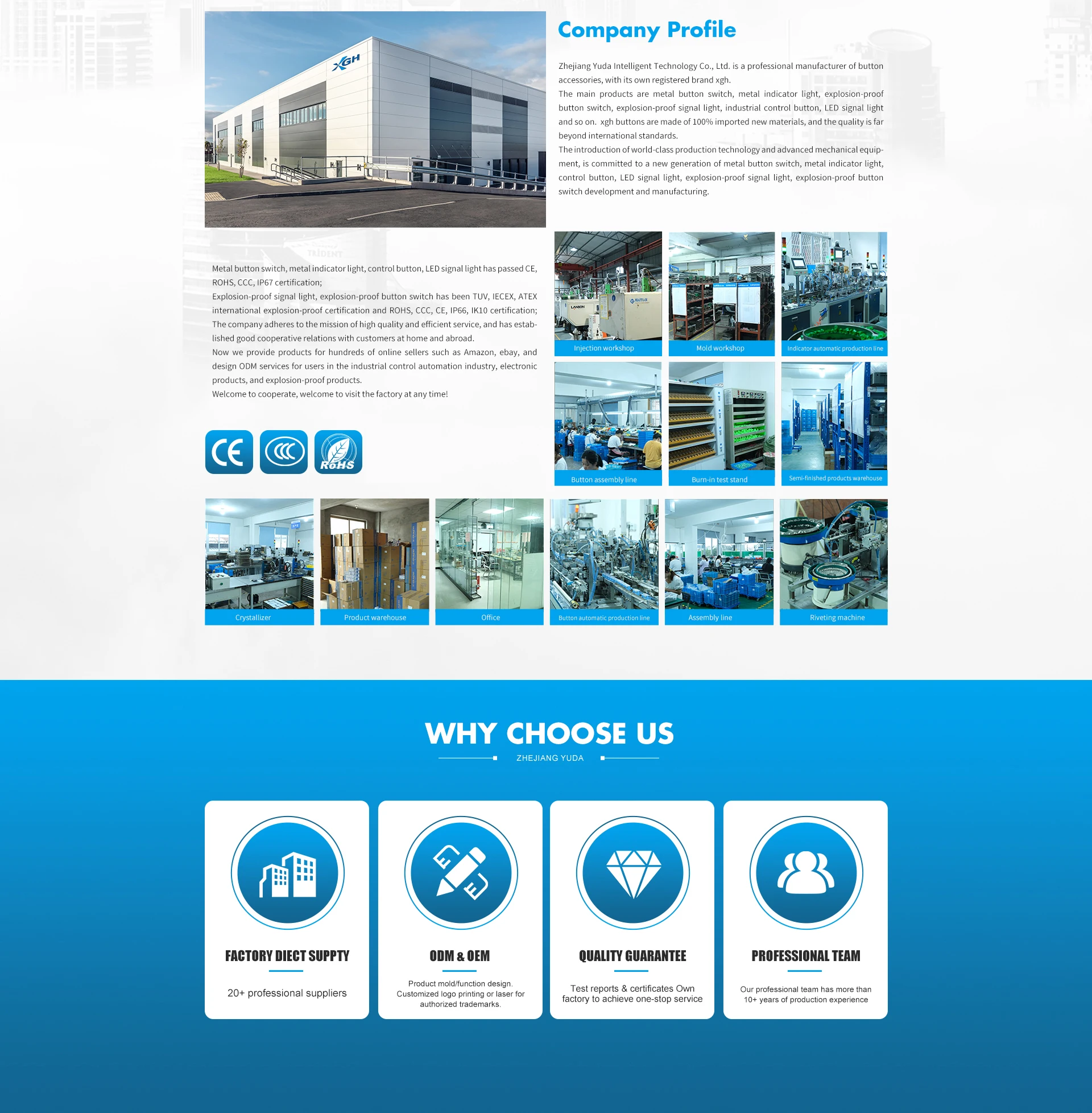 Produk utama: Lampu indikator, sakelar tombol tekan, tombol tahan ledakan